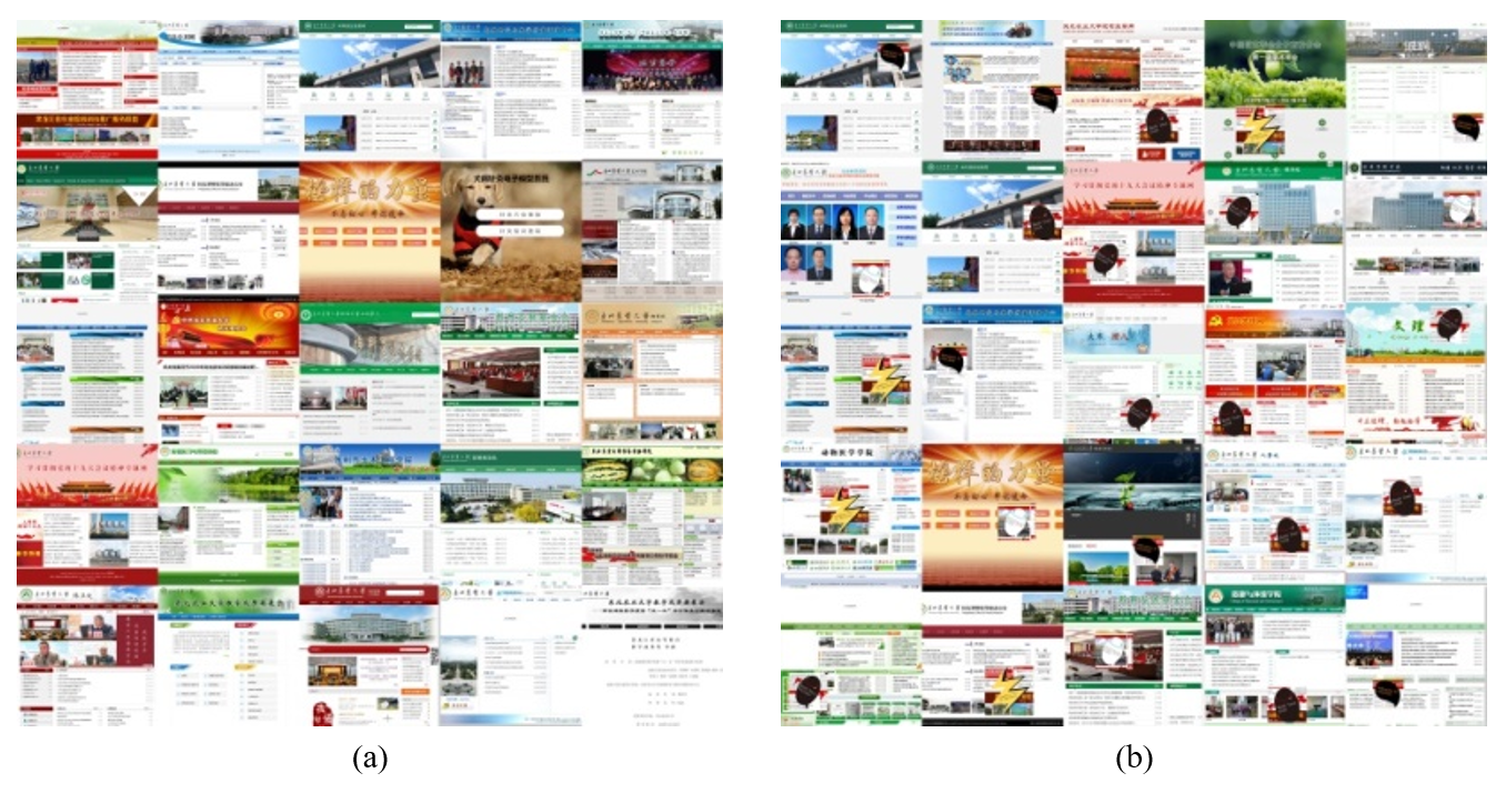 (a) Part of the captured webpages images and (b) part of the tampered web images.